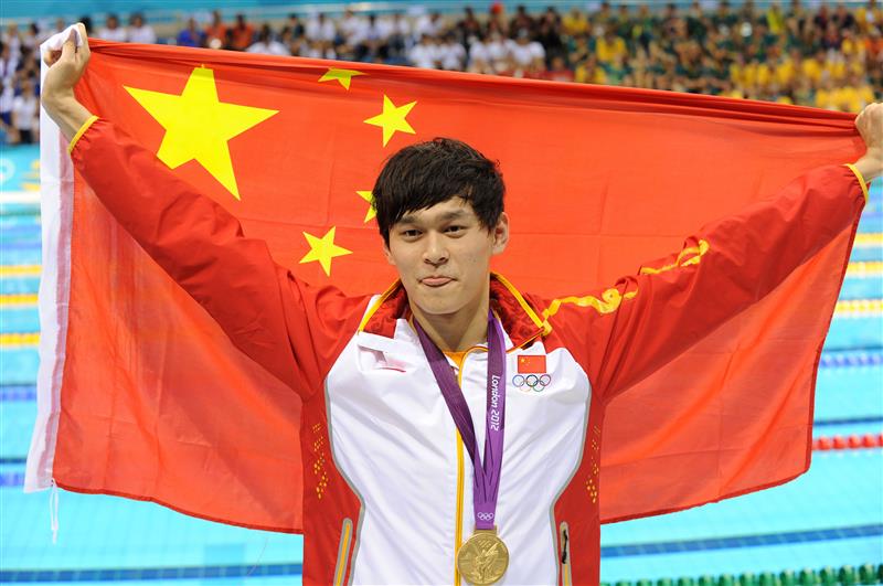 2012年伦敦奥运会,孙杨以14分31秒02的成绩获得1500米自由泳金牌,并打破世界纪录(新华社)